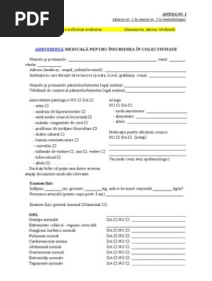 Adeverinta Medicala Pentru Intrare In Colectivitate 2018