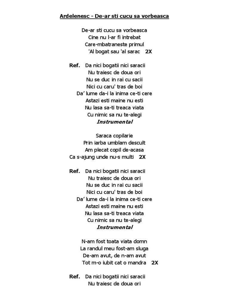 De Ar Sti Cucu Sa Vorbeasca Versuri