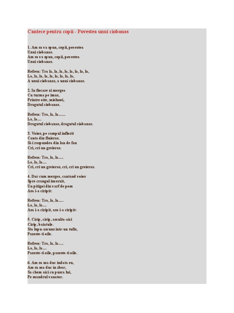 Cantece In Limba Romana Povestea Unui Ciobanas