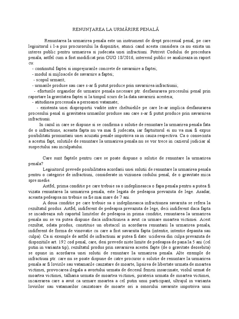 Renunțarea La Urmărire Penală