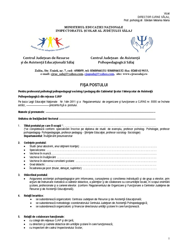 Pdf Anexa 1 Fisa Post 2019 2020 Cap Oana Bumbuc Academia Edu