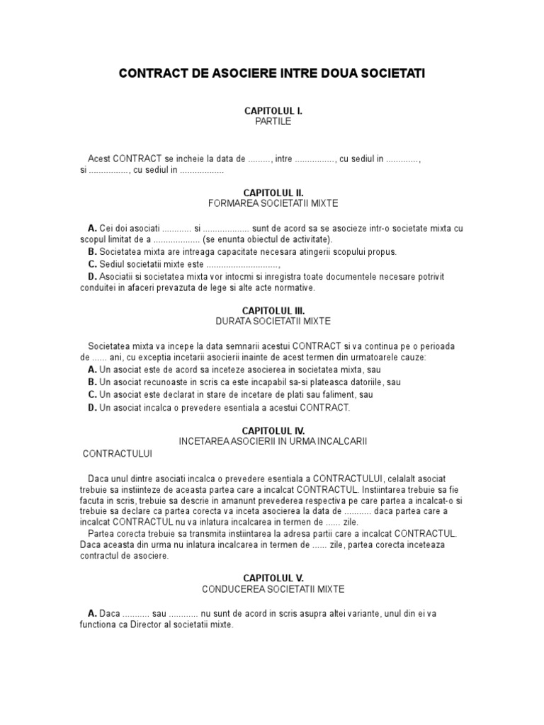 Contract Asociere Intre Doua Societati