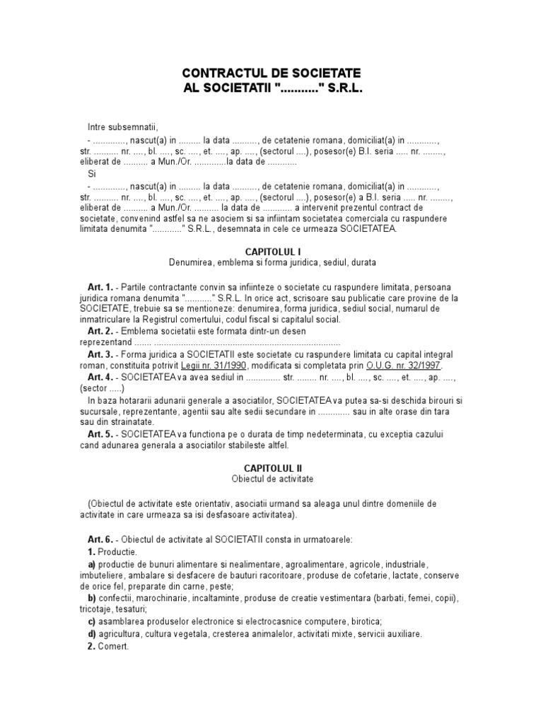 Act Constituitiv De Societate Comerciala Cu Raspundere Limitata Cu Mai Multi Asociati