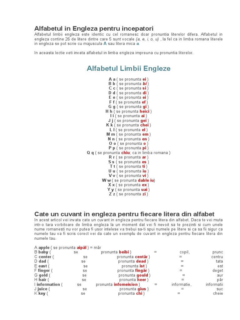 Reguli De Pronuntie In Limba Engleza Litere Si Grupuri De Litere