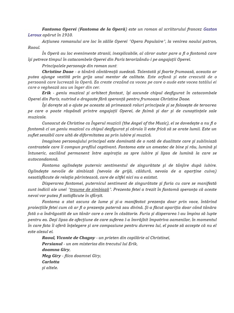 Fantoma De La Opera Personaje Rezumat Docx