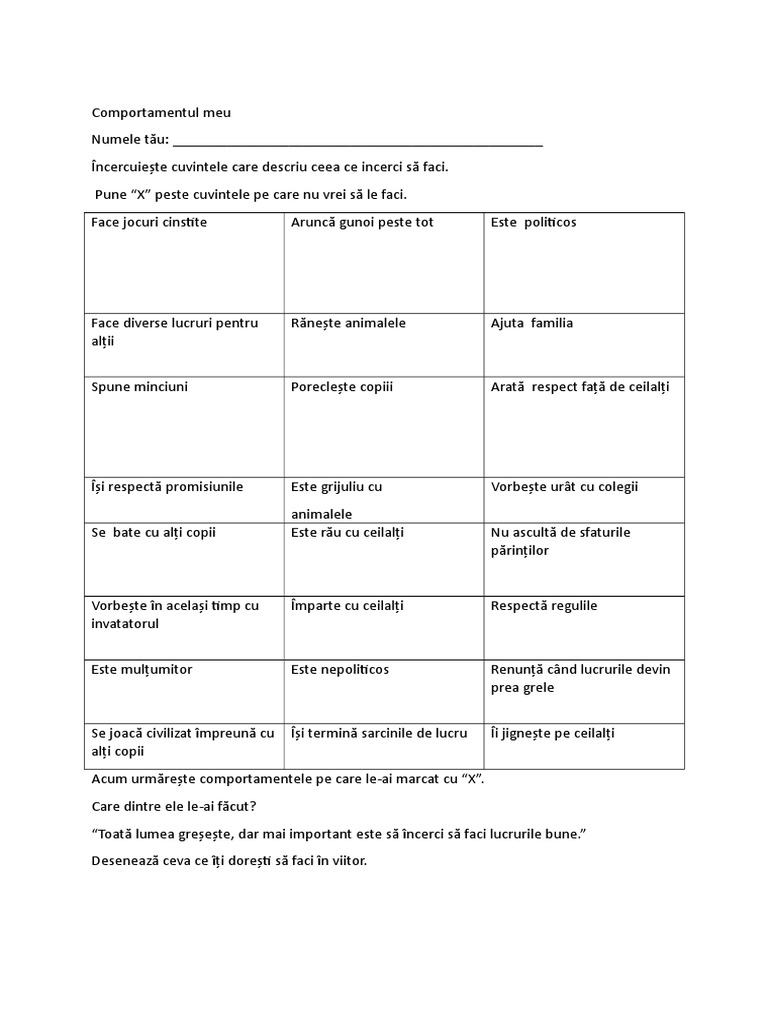 Fisa De Lucru Comportamente Sociale