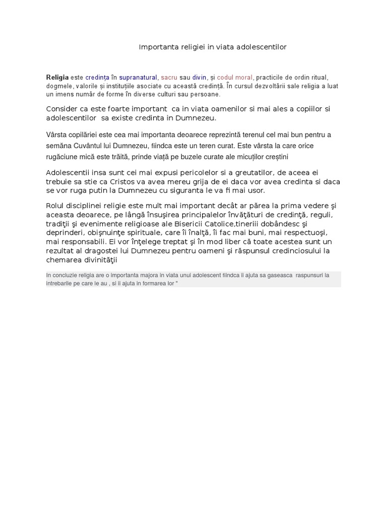 Rolul Religiei In Dezvoltarea Copilului Si Adolescentului Doxologia