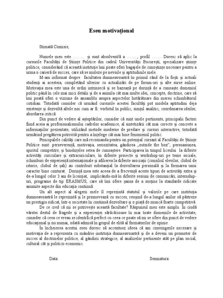 Model Eseu Motivațional