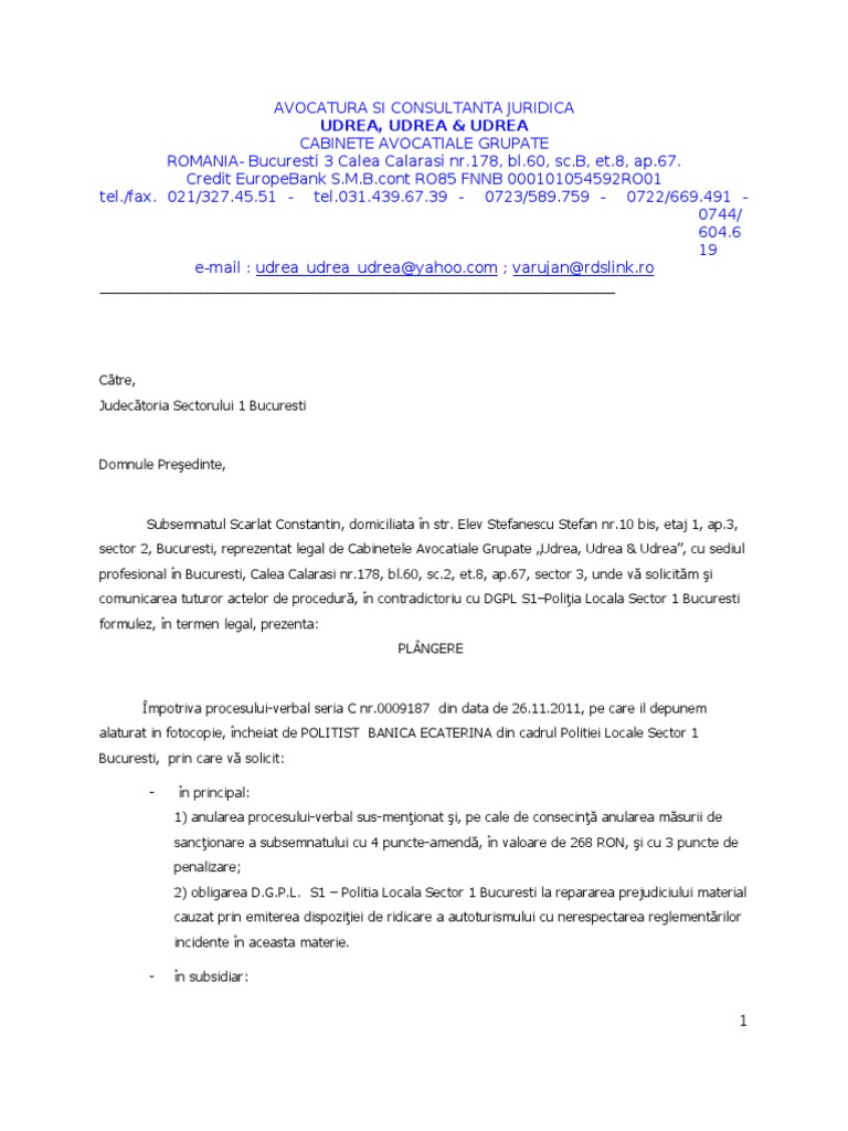 Plangere Proces Verbal Constatare Contraventie Ridicare Auto Scarlat Constantin