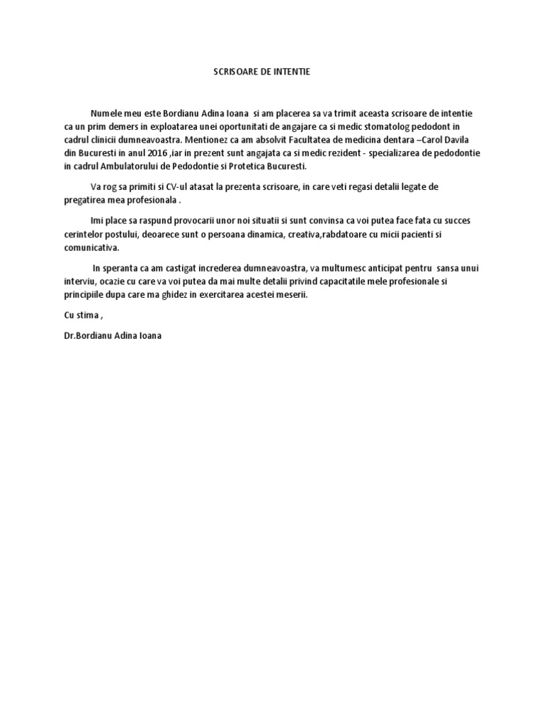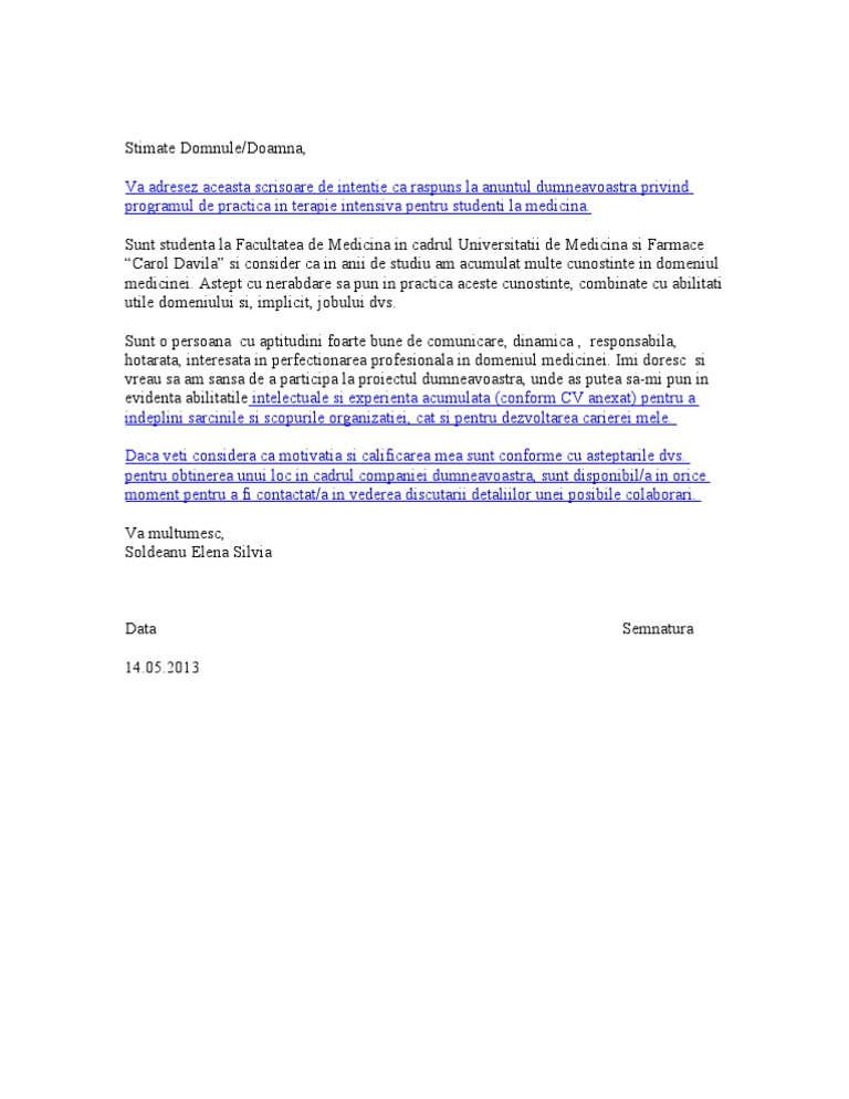 Scrisoare De Intentie Pentru Facultatea De Medicina