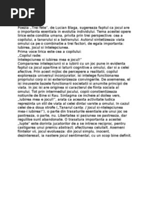 Trei Fețe Lucian Blaga Comentariu Docx Document